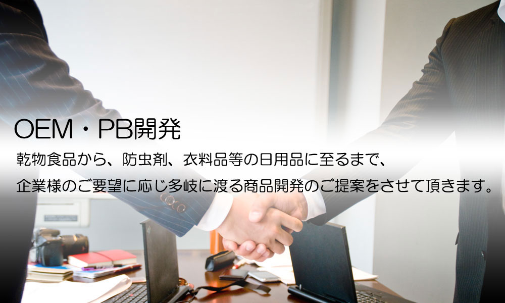 日用品では、衣類用防虫剤、トイレ用防臭剤のOEM事業に多くの実績があります。